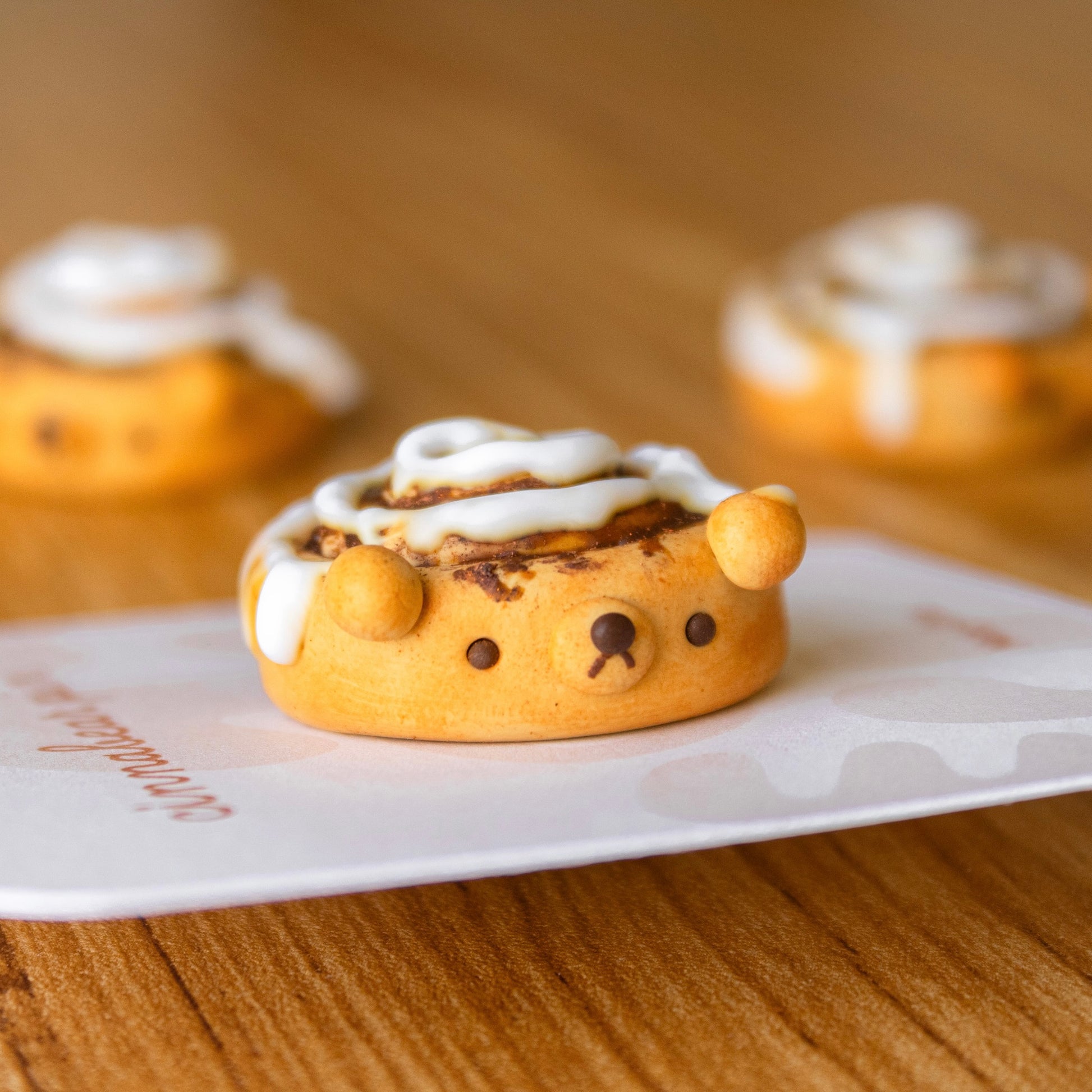 If you like cinnamon rolls and bears, this one’s for you! Cinnabear is a sweet, handcrafted miniature food pin for your jacket or tote, ready to bring a touch of cozy joy wherever you go.