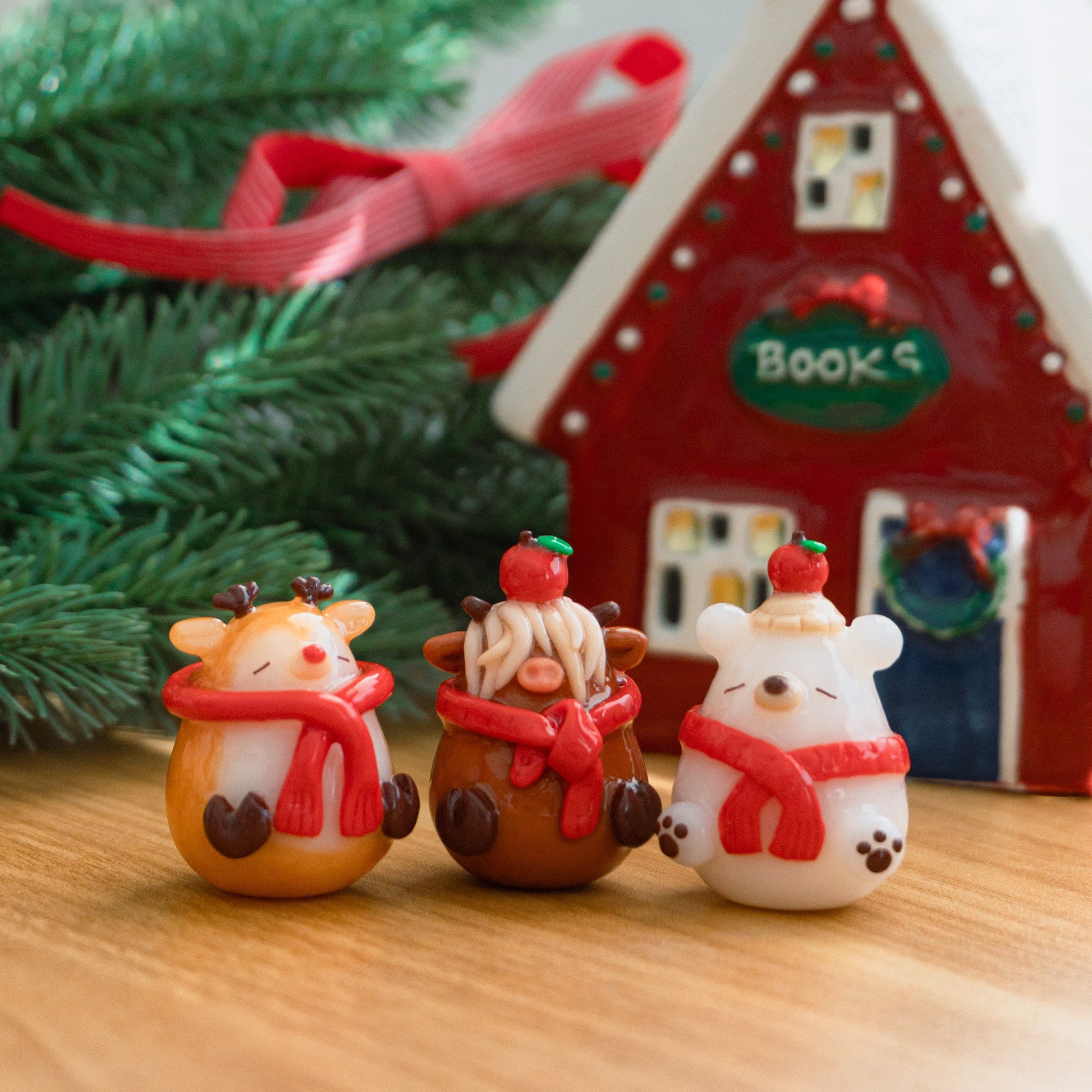 All bundled up in its cozy beanie and scarf, a little sleepy and with a sweet apple on its head, this polar bear friend is ready to keep you company on your desk all winter!